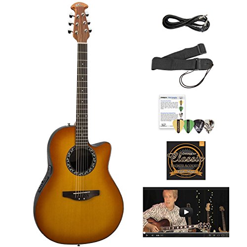 Ovation AB24-HB-KIT-1 Applause Balladeer Acoustic-Electric Cutaway Guitar, Honey Burst