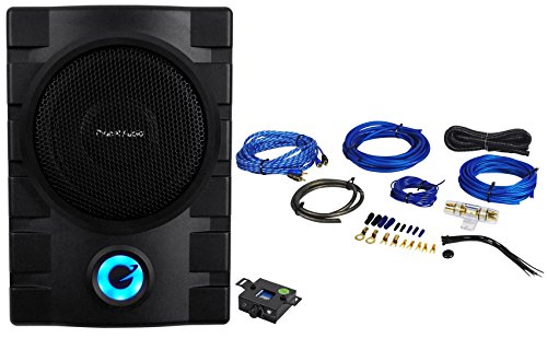 Package: Planet Audio P8UAW 8" 800 Watt Powered Low Profile Under-Seat Subwoofer With 3-Way Protection and Remote + Rockville RWK81 8 Gauge 2 Channel Complete Wire Kit With RCA Cable
