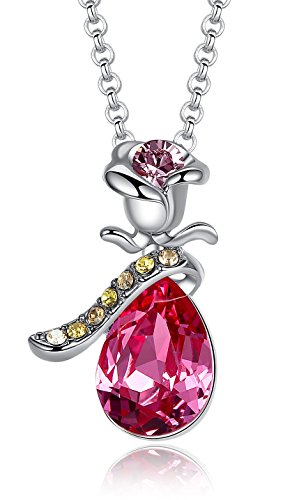 Leafael "Lovely Rose" Swarovski Crystal Pink Teardrop Pendant Necklace, 18", Nickel/Lead/Allergy Free, Luxury Gift Box, Life Time Guarantee
