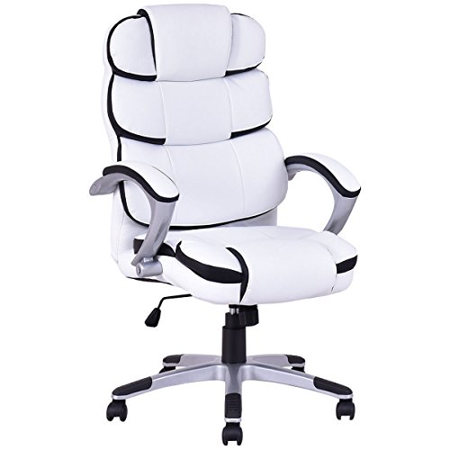 Giantex Office Chair Executive Computer Desk Chair PU Leather Ergonomic High Back Height-Adjustable Task Chair with Swivel Wheels and Breathable Cushion (White)