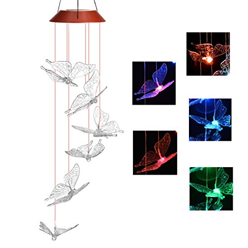 IMAGE Solar Butterfly Wind Chimes Color Changing Butterfly Wind Chimes Mobile LED Wind Chimes Gift for Home Garden Patio Yard Lawn Decor(Butterfly)