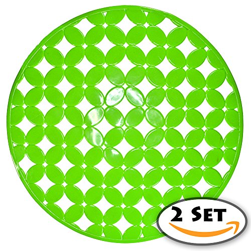 2 set of Decorative Round Sink Mat Drainer, Measure 11” Dia, Protective Durable PVC, Simple Floral Pattern (Green)