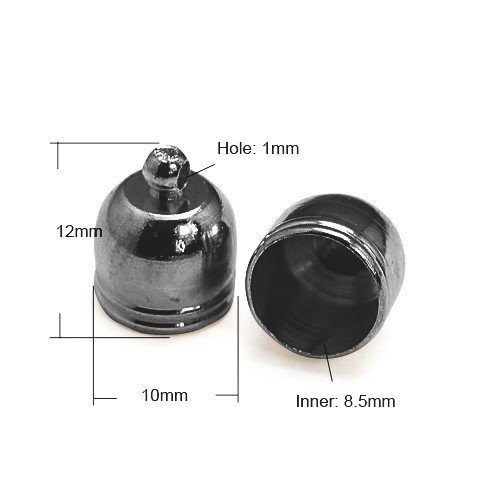 Packet of 10 x Black Plated Brass 10 x 12mm Kumihimo Bell-Shape End Caps - (HA12140) - Charming Beads