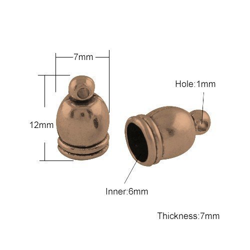 Packet of 10 x Red Copper Tibetan 7 x 12mm Kumihimo Bell-Shape End Caps - (HA12180) - Charming Beads