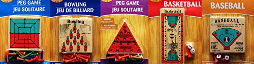 Wooden Colored Peg Board Travel Games, Tic-Tac-Toe, Mill, Bowling, Conqueror, Basketball and Baseball, 5-ct Set