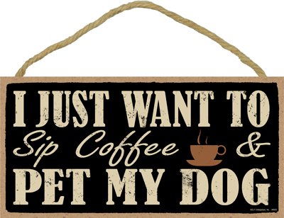 SJT ENTERPRISES, INC. I just Want to sip Coffee and pet My Dog 5" x 10" Primitive Wood Plaque Sign (SJT94505)