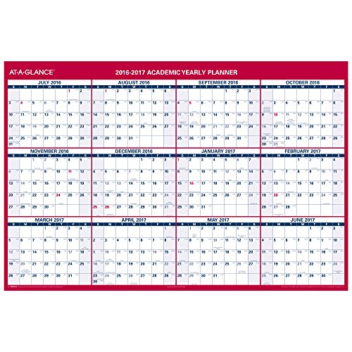 AT-A-GLANCE Academic Year Erasable Calendar, July 2016-June 2017, Vertical/Horizontal, 2-Sided, 48"x32" (PM36AP2817)