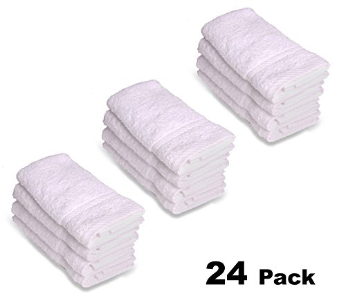 Classic Linen Luxury Hotel Washcloths, 100% Egyptian Cotton, White Washcloth Set of 24,