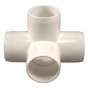 Performance PVC - 4-Way PVC Side Outlet Tee Fitting, Furniture Grade, 3/4" Size, White (Pack of 8)