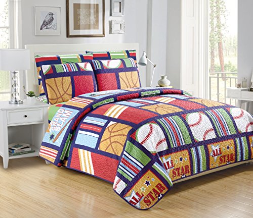 Fancy Collection Blue Red Green Sport Kids/teens 5 Pc Quilt and Sheet Set Bedding Twin Size
