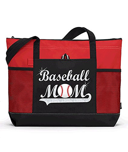 Glitter Baseball Mom Sports Tote - Sliver glitter on Red/Black Tote FREE SHIPPING