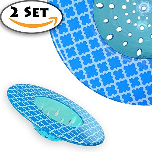 2 Set of Decorative Kitchen Sink Strainers, 1.5” Deep Basket, Durable Plastic Waste Filter, Fit most kitchen sinks, Resists rust, Lovely Design. (5.25", Blue Checker)