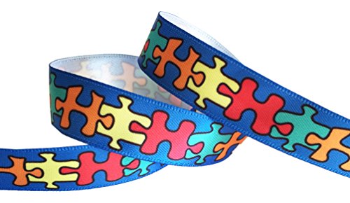 Jigsaw Puzzle Autism Awareness Ribbon and Bows (10pc 1.5" Petal Flower Clips--Autism)