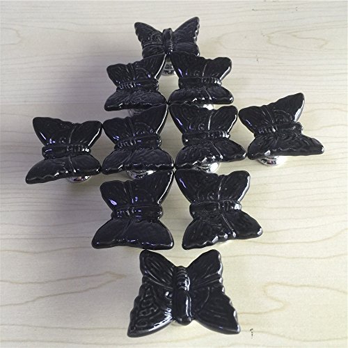 SunKni 33mm 10 Pack Ceramic Dresser Knobs for Girls Kids, Butterfly Animal Drawer Knobs Pulls Handles for Kitchen Cupboard Cabinet Nursery (Green)