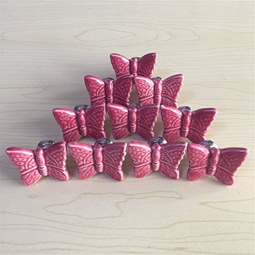 SunKni 33mm 10 Pack Ceramic Dresser Knobs for Girls Kids, Butterfly Animal Drawer Knobs Pulls Handles for Kitchen Cupboard Cabinet Nursery (Purple)