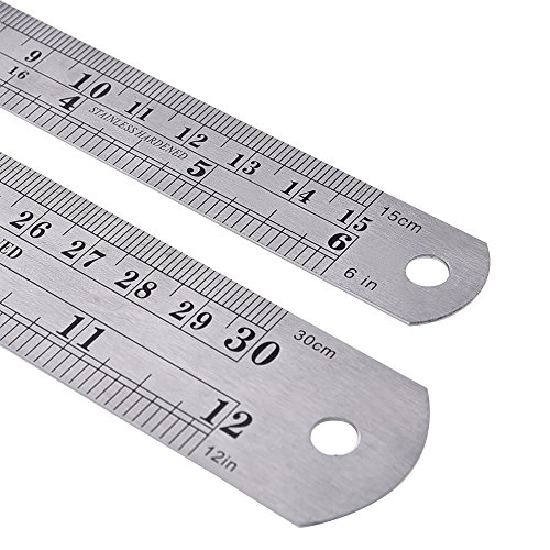 eBoot Stainless Steel Ruler 12 Inch + 6 Inch Metal Rule Kit with Conversion Table