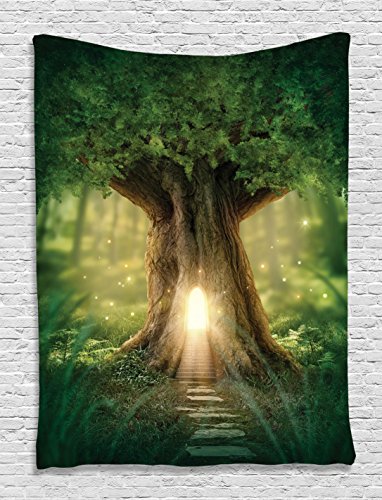 Ambesonne Tree Tapestry, Tree of Life Themed Arrangement with Thirving Jungle Spring Season, Wall Hanging for Bedroom Living Room Dorm, 60" X 80", Brown Yellow