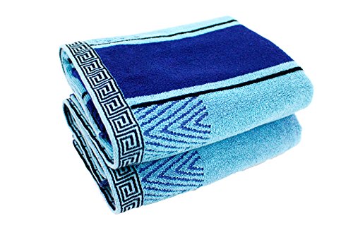 Comfortable Cotton Blue Large Bath Towels 50 Inch Home Travel Swim Indoors Outdoors use Water Absorb Absorbent Beach Fast Dry Camp Bathing Suit Bathroom Washroom (2 PACK) by MakExpress