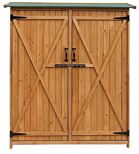 Merax Wood Shed Garden Storage Shed with Fir Wood (Natural wood color - Double door)