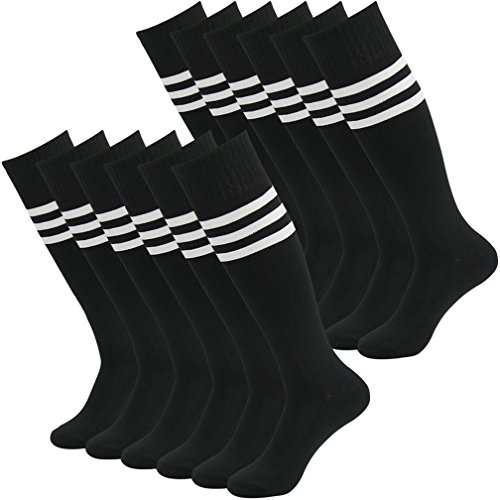 Fasoar Unisex Knee High Long Stripe Football Sports Tube Socks(3-12 Packs)