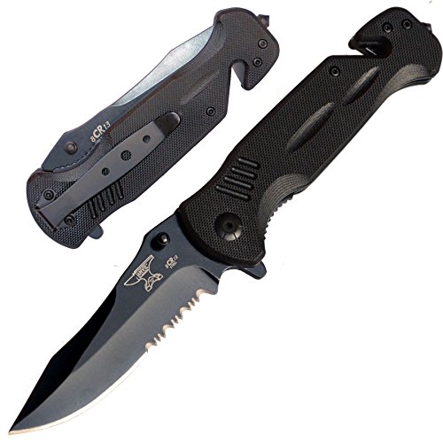 ANVIL BLADESMITHS - BULLSHARK G-10 8CR13 Knife w/Glass Breaker and Seatbelt Paracord Cutter - Choice of Straight or Serrated Blade - Assisted Open or Manual Open