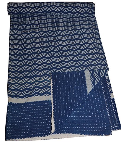 Tribal Asian Textiles Twin Size Handmade Cotton Block Indigo Print Kantha Quilt Reversible Throw Sari
