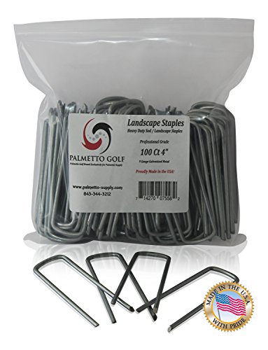 Palmetto Golf 100 Ct 4 inch 9 Gauge Anti-Rust Extreme Heavy Duty Galvanized Professional Metal Sod / Landscape / Garden / Lawn / Edging / Staple and Fabric Pins / Stakes / Pegs - MADE IN THE USA