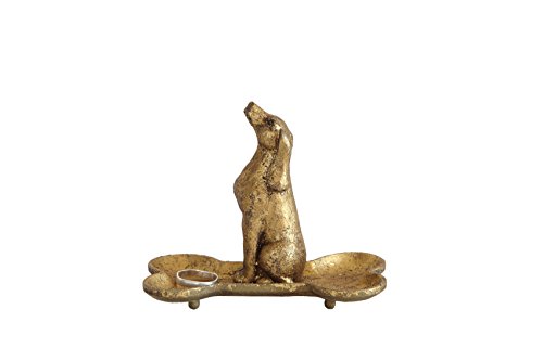 Creative Co-op Pewter Bone Shaped Jewelry Holder with Dog with Gold Finish