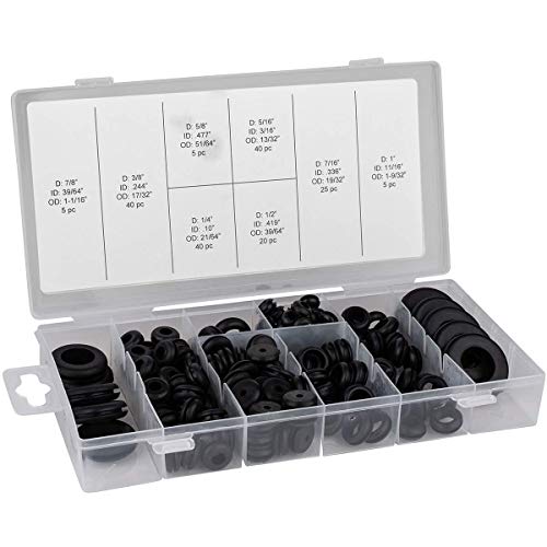 Katzco 180 Piece Rubber Grommet Kit Assortment - Heavy-Duty Pieces in Different Sizes with a Carrying Case