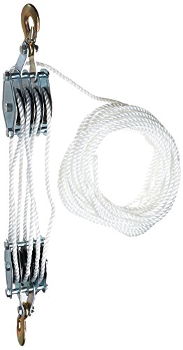 Katzco Poly Rope Pulley Block & Tackle Hoist With Safety Snap Hook Heavy Duty 65 Foot Long Wheel & Axle Lift For Easy Lifting, Up To 4000 LB Capacity