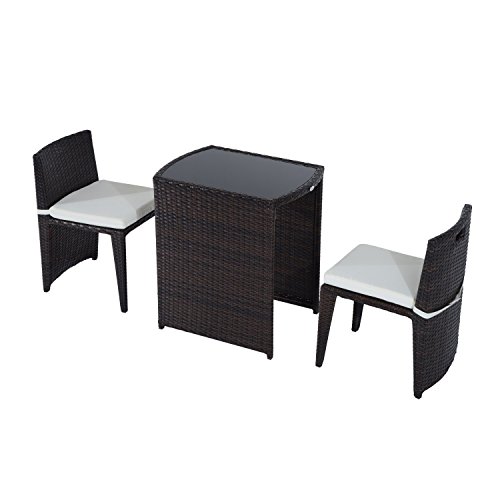 Outsunny 3 Piece Chair and Table Rattan Wicker Patio Nesting Furniture Set