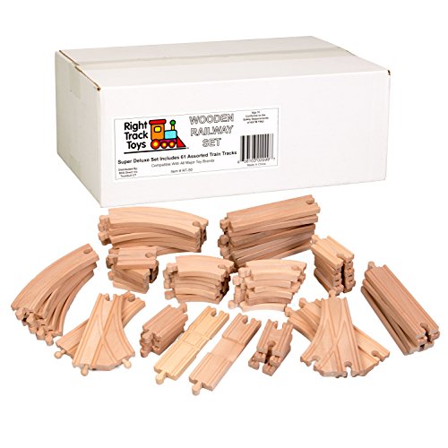 Wooden Train Track - 61 Piece Set 100% Compatible with Thomas, Brio, Chuggington, and Other Major Brands