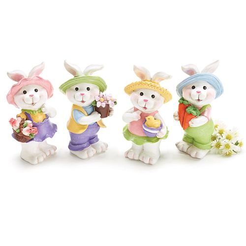 Easter Decor Small Handpainted Resin Garden Bunny Figurines Set of 4
