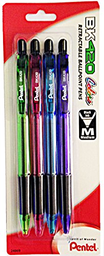 Pentel BK420 Colors Retractable ballpoint pens Black ink Medium point (4-pack)