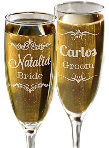 Set of 2 Bride and Groom Champagne Glasses Personalized with Name Laser Engraved Champagne Flutes for Wedding Newlyweds