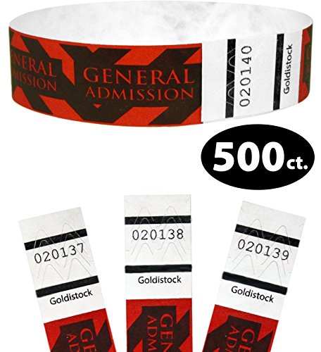 Goldistock 3/4" Tyvek Wristbands Official General Admission - Neon Red 500 Count - Event Identification Bands (Paper - Like Texture)