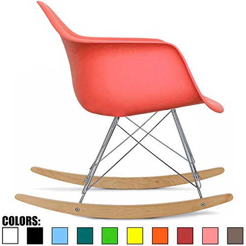 2xhome Pink Mid Century Modern Molded Shell Designer Plastic Rocking Chair Chairs Armchair Arm Chair Patio Lounge Garden Nursery Living Room Rocker Replica Decor Furniture DSW Chrome