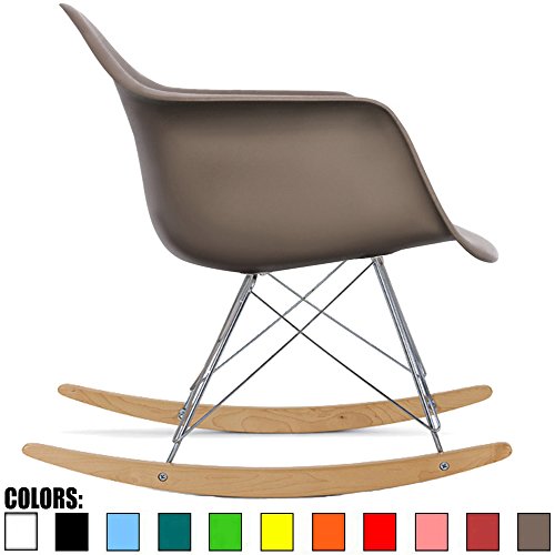 2xhome Taupe Gray Mid Century Modern Molded Shell Designer Plastic Rocking Chair Chairs Armchair Arm Chair Patio Lounge Garden Nursery Living Room Rocker Replica Decor Furniture DSW Chrome