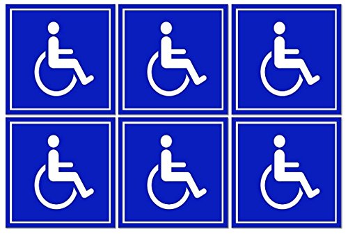 6 Pack of Disabled/Wheelchair Symbol ADA Compliant Handicap Access 3 X 3 Inch Blue Stickers 3M Vinyl Decals