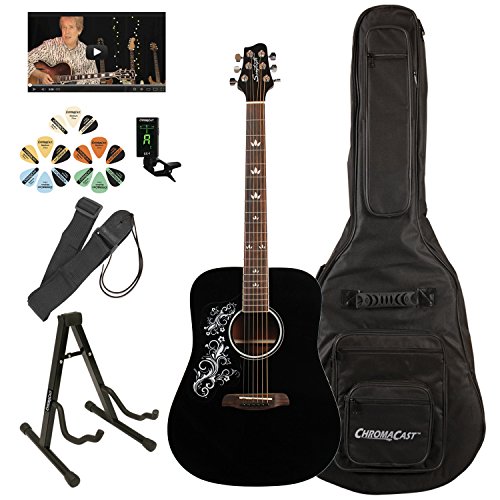 Sawtooth ST-LH-AD-D-BK-KIT-3 Acoustic Guitar Pack, Left Handed, Black with Graphic