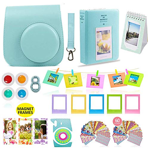 Fujifilm Instax Mini 9 or Mini 8 Instant Camera Accessories Bundle 11 Piece Gift Set Kit Includes BLUE Case with Strap, Albums, Filters, Selfie lens, Hanging + Creative Frames, 60 stickers & More