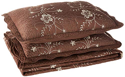 Home Must Haves Set 3 Piece Bedspread Brown Quilt Sham Floral New (Queen)