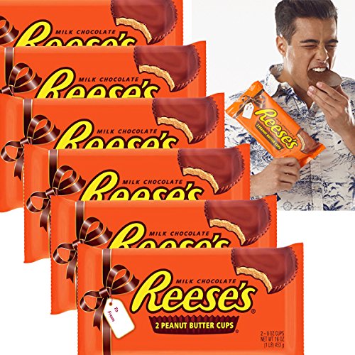 (Set of 6) 1-Pound Package Giant Reese’s Milk Chocolate Peanut Butter Cups Candy Bar Valentines
