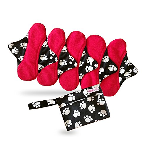 Period Mate Set Of Five Medium 9.5 Inches Long Reusable Pads With Wet Bag (paw print)