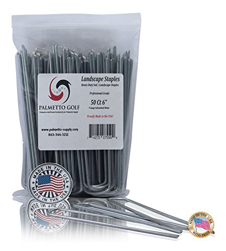 Palmetto Golf 50 Ct 6 inch 9 Gauge Galvanized Extreme Heavy Duty Commercial Grade Anti-Rust Metal Sod / Landscape / Garden / Lawn / Edging / Staple and Fabric Pins / Stakes / Pegs - MADE IN THE USA