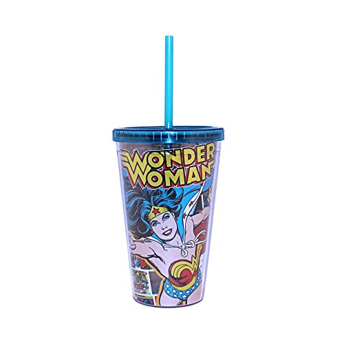 Silver Buffalo WW97087 DC Comics Wonder Woman Comic Pop Plastic Cold Cup with Lid and Straw, 16-Ounces