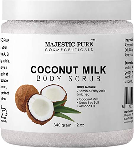 Majestic Pure Coconut Milk Body Scrub, Anti Cellulite & Exfoliator, Natural Skin Care Formula Helps with Stretch Marks, Eczema, Acne and Varicose Veins, 12 Oz