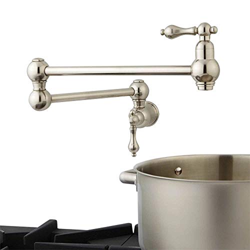 21" Pot Filler, Wall Mount, Classic, Traditional, Vintage, Retractable, Double Joint Spout, Brushed Nickel