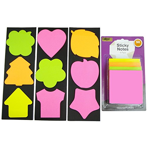 Sticky Notes Assorted Shapes 4 x Square Pad + 3 x 3 Shapes Arrows, Hearts, Stars, Apples, Trees