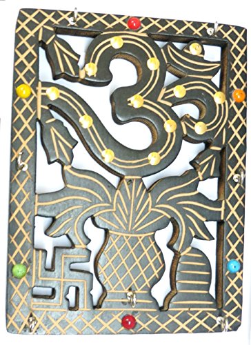 Square Om Wooden Hand Carved Wall Hanging Key Holder with 7 Hooks Home Kitchen Decor, By Affaires Gift for Birthday to Your Loved Ones W-40099